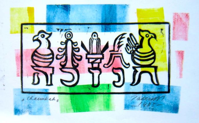 LL: “˛˛Chanukah‚‚”; LR: artist’s signature followed by “–1985–”